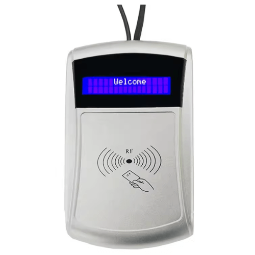 This TCP RFID LCD Display Card Reader has a frequency of 13.56 MHz, a dimension of 140mm ×80mm × 30mm, and a reading distance of up to 8 cm.