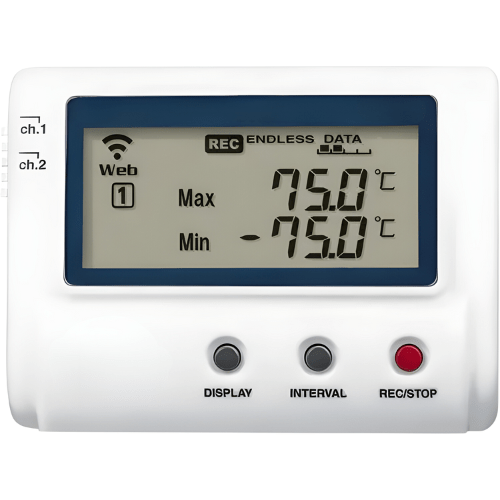 Hospitality Enviro Tech 2 Channel Thermo Logger 8,000 Data storage, Cloud Service through network. View historical information with a computer, tablet or mobile phone, Email alarm function the user can be notified immediately.