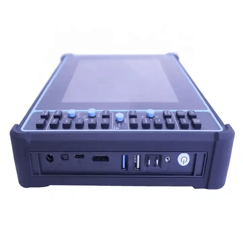 This Digital Oscilloscope has bandwidth of 100 MHz, sampling rate of 1 GSa/s, display of 8 in, memory depth of 70 Mpts, and battery of 7500 mAh.