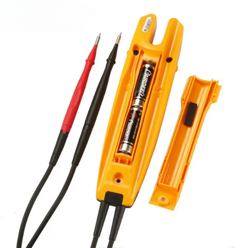 Hospitality Enviro Tech electrical tester measures voltage up to 1000 V AC through its open fork without any test lead contact to the live voltage.