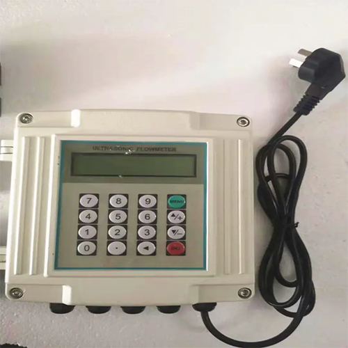 This Flow Meter Clamp has 85 V to 264 V AC power supply, fluid temperature of ≤320 °F, 2 in to 27.6 in pipe diameter, and 1% accuracy.