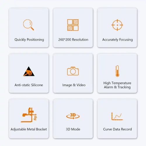 This Metal Bracket Thermal Imager has spectral range of 8 μm to 14 μm, frame rate of 25 FPS, 5 V DC battery, temperature Range of 14 ℉ to 842 ℉.