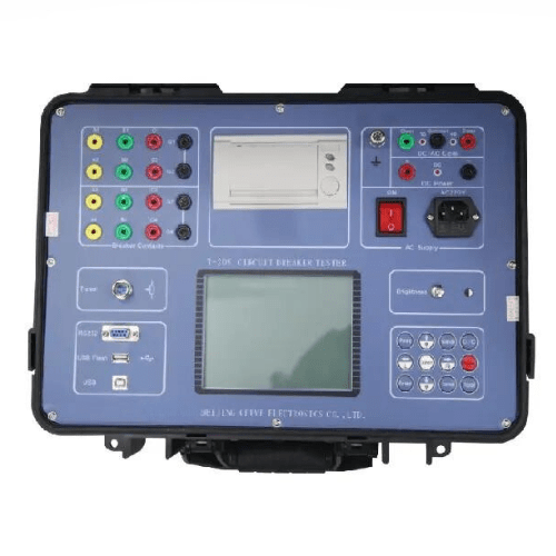Hospitality Enviro Tech portable high voltage circuit breaker tester performs three main tasks When closed, they must conduct the current as effectively as possible. When open, they must insulate the contacts from one another as effectively as possible. In the event of a malfunction, they must disconnect the fault current as quickly and reliably as possible, thereby protecting all subsequent equipment. In the US market and regions of frequent earthquakes, the most popular high-voltage circuit breakers are “dead tank” units, whereas in central Europe “live tank” breakers are standard. In other parts of the world, both circuit breaker types can be found. In the worst case, a circuit breaker might stand still for several years, but then, in the event of a malfunction, it must disconnect fault currents of many kiloamps reliably within just a few milliseconds. Typical faults that occur on circuit breakers are short circuits in the coils, incorrect behaviour, for example due to worn contacts, as well as damage or wear to the mechanical connections or the insulation material. Therefore, circuit breakers need to be regularly and carefully tested. Circuit breaker testing typically focuses on performing motion and time measurements on the units. However, our testing solutions have revolutionized circuit breaker testing. The testing solutions we offer include systems that can supply power during the testing process and can measure the micro-ohm resistance across the closed contacts. Performing the tests without use of the station battery greatly increases safety throughout the testing process. high voltage Circuit Breaker Tester can test the vacuum circuit breaker, sf 6, oil circuit breaker, GIS etc. the test parameters include, close or open time, delta time, bounce time, bounce cycles, multi-operation, stroke, gap, over-travel, overshoot, rebound and the speed, with the ability of test results and graph display. The T-209 is the instrument platform for circuit breaker maintenance based on decades of experience and thousands of delivered breaker analyzers. The modular construction makes it possible to configure this product for measurements on all known types of circuit breakers in operation on the world market. The robust design contains powerful technology that streamlines circuit breaker testing. Sophisticated measurement modules enable great time savings as many parameters can be measured simultaneously, eliminating the need for new setup each time. The patented Dual Ground™ testing using the DCM module makes the testing safe and time saving by keeping the circuit breaker grounded on both sides throughout the test. The DCM module uses a measuring technology called Dynamic Capacitive Measurement. Timing M or R is using the patented Active Interference Suppression to obtain correct timing and accurate PIR (Pre-Insertion Resistor) values in high voltage substations. An adaptive, easy-to-use software suite supports activities from timing, simply turning a knob without the need for presetting, to advanced help functions for hooking up to the test object. A keyboard and 5.7 in (14.48 cm) screen the front end of the high-level user interface. The Select-Connect-Inspect workflow guides you to fast results in three steps. Testing is made easier to learn and perform. The system also offers full connection capability to the local network, printers etc.