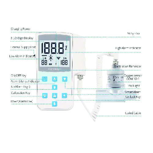 Hospitality Enviro Tech portable oxygen concentration gas detector is used for measuring the oxygen concentration from 0% to 100%. With compact, lightweight design, it is easy to be used in various medical applications.
