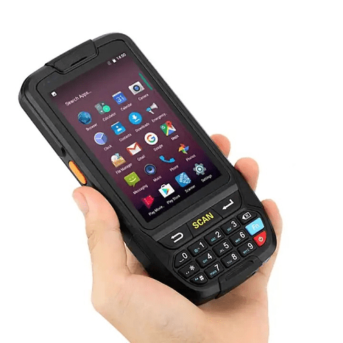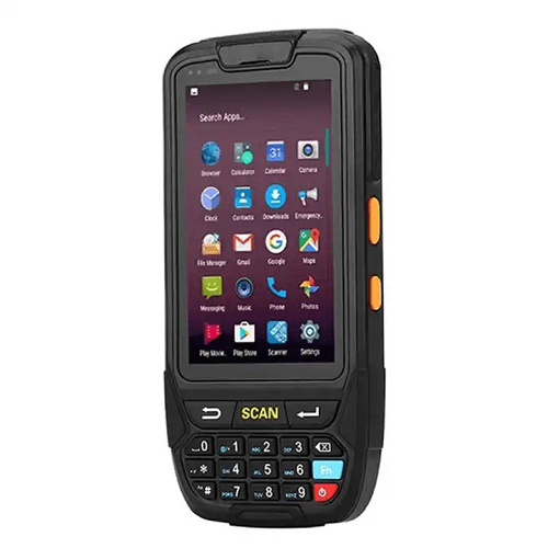 4 in display, 8 MP camera, Android 7.0, 2 GB RAM, 16 GB ROM, NFC and barcode scanning capabilities, IP65 rated, suitable for various applications.