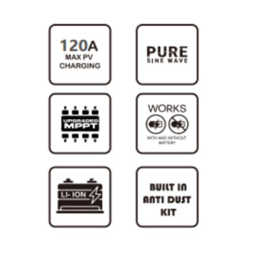| Maximum Charging Current (Solar to AC) | 120A |